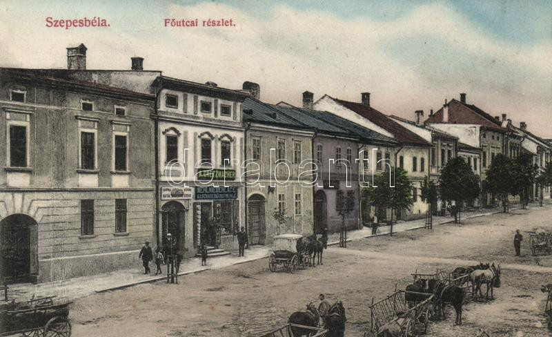 Szepesbéla, Fő utca; Gretzmacher Ágost lisztraktára, saját kiadás / main street, Gretzmacher's shop (fl)