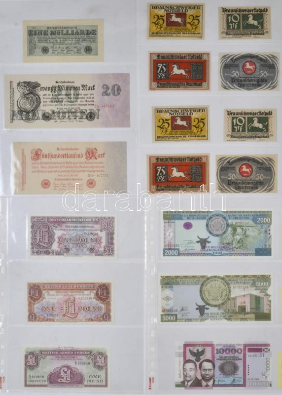 Description: Több mint 100db-ból álló főként német bankjegy gyűjtemény jobb és több sorszámkövető darabokkal. A tétel túlnyomó része unc állapotban, berakóba rendezve és indexelve. Megtekintésre ajánlott! T:vegyes