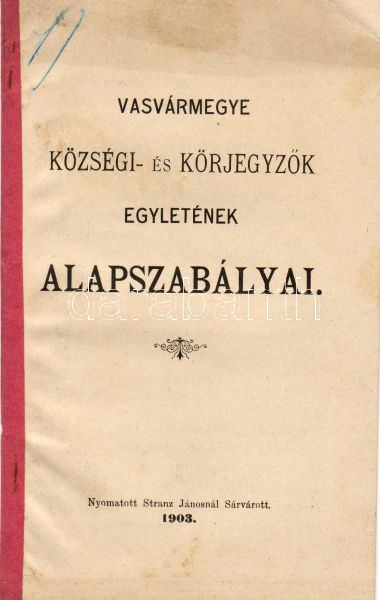 https://www.darabanth.com/en/18-Online-auction/18.0/Other-collectibles/~219/Vasvarmegye-kozsegi-es-korjegyzok-egyletenek-alapszabalyai-Sarvar-1903-Stranz-Janos~II32154