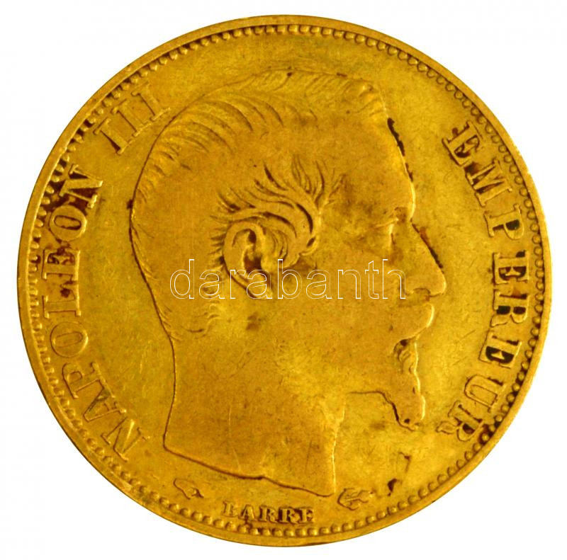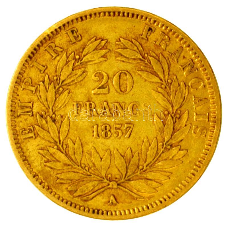 Franciaország / Második Császárság 1857A 20Fr Au "III. Napóleon" Páriz... https://www.darabanth.com/en/180-Online-auction/180.0/Numismatics/Hungarian-and-foreign-gold-coins~200010/Franciaorszag-Masodik-Csaszarsag-1857A-20Fr-Au-III-Napoleon-Parizs-637g0900-T2-3-~II642389
