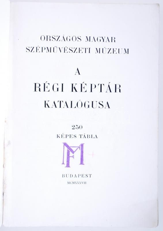 Biró Béla: A régi képtár katalógusa. Budapest 1937. Országos Magyar Sz...