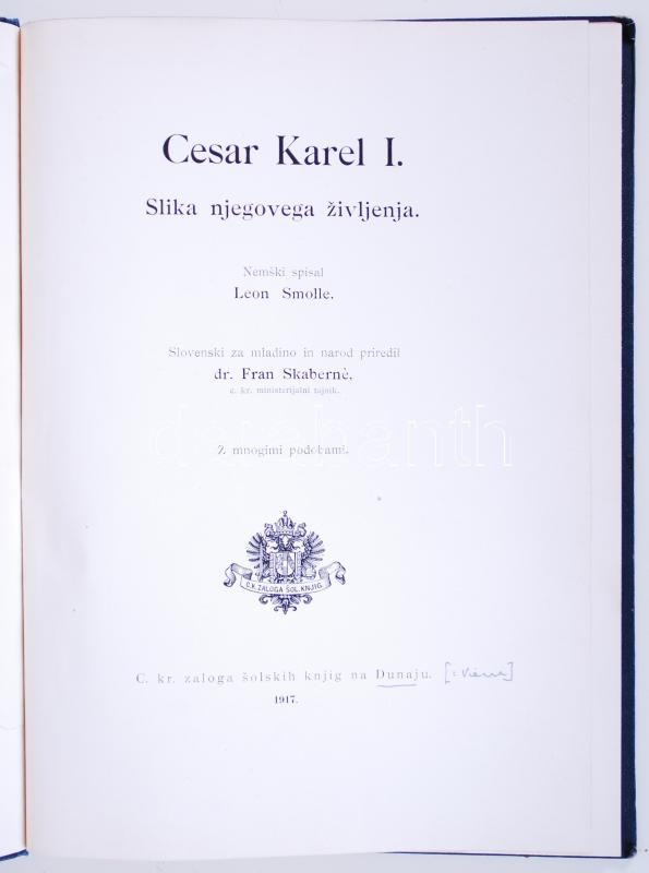 Leon Smolle: Cesar Karel I. Vien 1917. 112p. sok fotóval, festett egés... https://www.darabanth.com/en/180-Online-auction/180.0/Other-collectibles/Books-History~400028/Leon-Smolle-Cesar-Karel-I-Vien-1917-112p-sok-fotoval-festett-egeszvaszon-kotesben-szep-C3~II643283