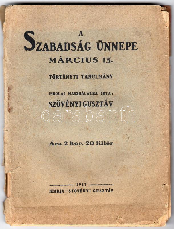 https://www.darabanth.com/en/180-Online-auction/180.0/Other-collectibles/Books-History~400028/Szovenyi-Gusztav-A-szabadsag-unnepe-Marcius-15-Kassa-1917-Kisebb-szakadasokkal-tobb-lap-~II637818