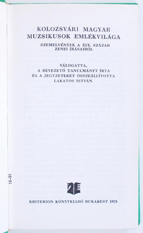 Apos Péter: Metamorphosis Transylvaniae + Kolozsvári magyar muzsikusok emlékvilága. Bukarest, 1978 Téka