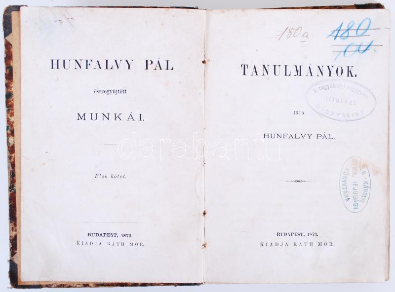 https://www.darabanth.com/en/180-Online-auction/180.0/Other-collectibles/Books-Other-rarities~400036/Hunfalvy-Pal-Tanulmanyok-1-kiadas-Bp-1873-Rath-Mor-Csak-a-308-oldalig~II640858