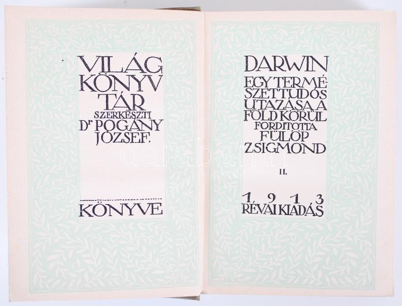 Charles Darwin: Egy természettudós utazása a Föld körül II. Ford. Fülöp Zsigmond. (Világkönyvtár) Bp., 1913, Révai. Kiadói, festett egészvászon sorozatkötésben, illusztrációkkal, jó állapotban