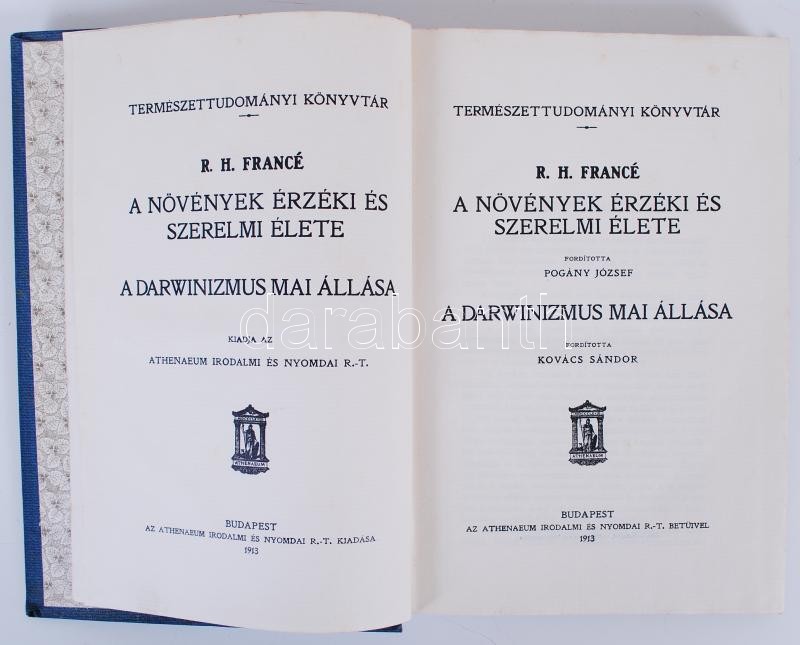 Raoul Heinrich Francé: A növények érzéki és szerelmi élete. Ford. Pogá... https://www.darabanth.com/en/180-Online-auction/180.0/Other-collectibles/Books-Science-and-thechnology~400029/Raoul-Heinrich-France-A-novenyek-erzeki-es-szerelmi-elete-Ford-Pogany-Jozsef-A-darwiniz~II638153