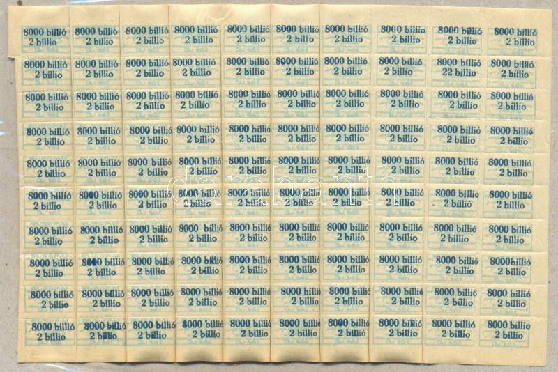1946 8000 billió p biztosítási bélyeg teljes 100-as ív