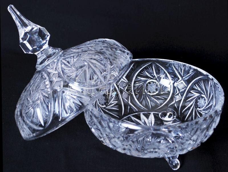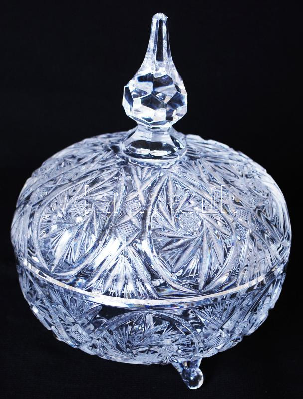Kristály bonbonier, csiszolt, metszett, hámozott, hibátlan, m:19 cm, d...