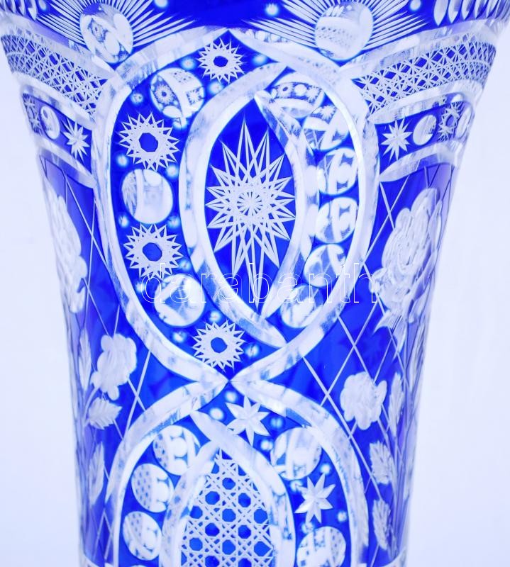 Ólomkristály kobalt kék nagy váza, több rétegű, csiszolt, metszett, há...