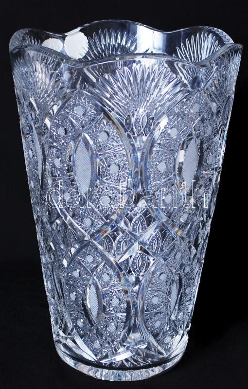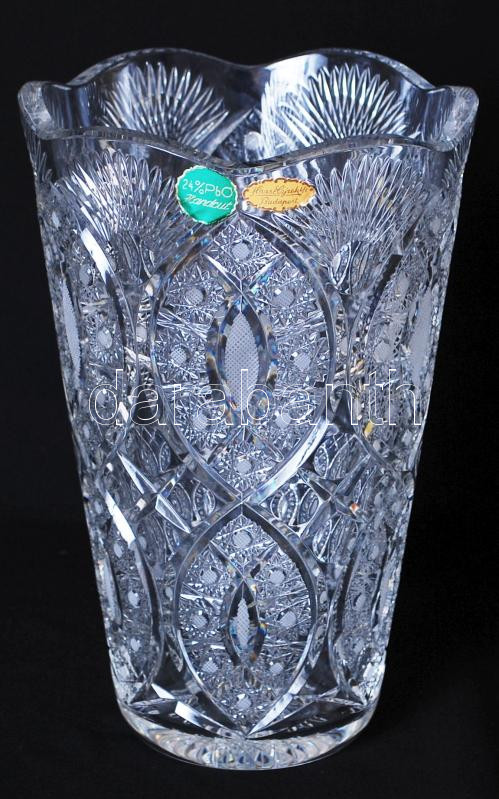 Ólomkristály véza, jelzett Haas & Czjzek, hibátlan, csiszolt, m:26 cm