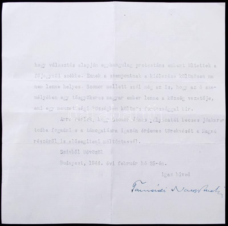 1944 Tasnádi Nagy andrás a képviselőház elnökének saját kézzel aláírt ...