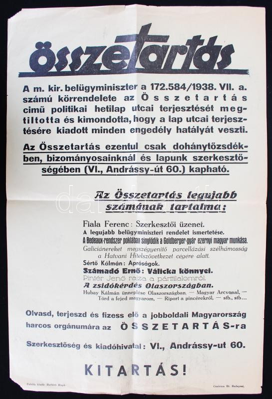 1938 az Összetartás c. nyilas lap plakátja 32x50 cm