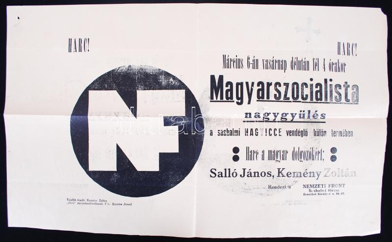 cca 1940 A Nemzeti Front nemzetiszocialista párt plakátja 48x36 cm