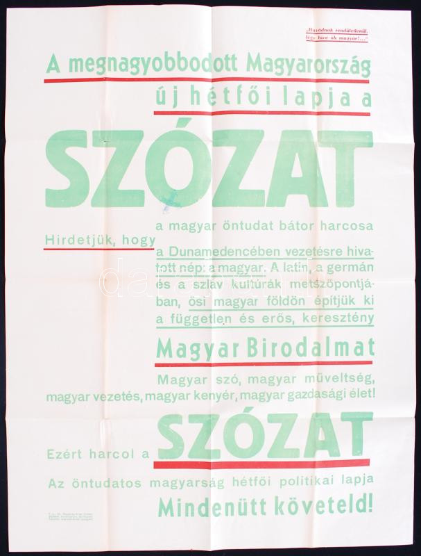 cca 1943 A szózat c. hungarista lap plakátja 40x60 cm
