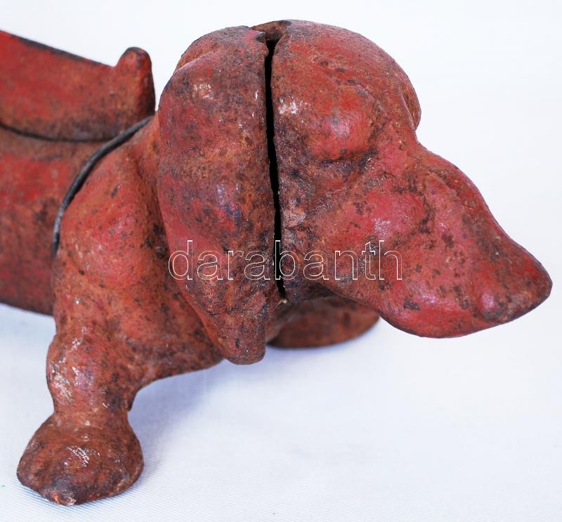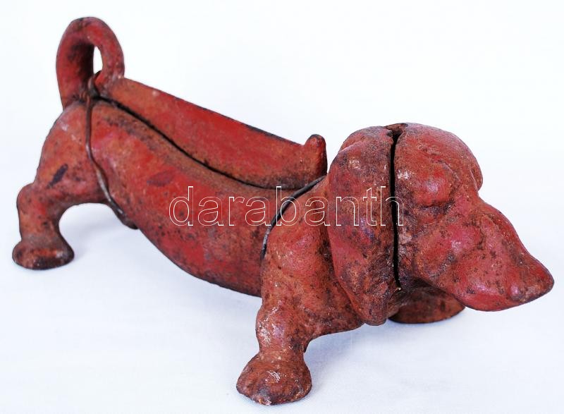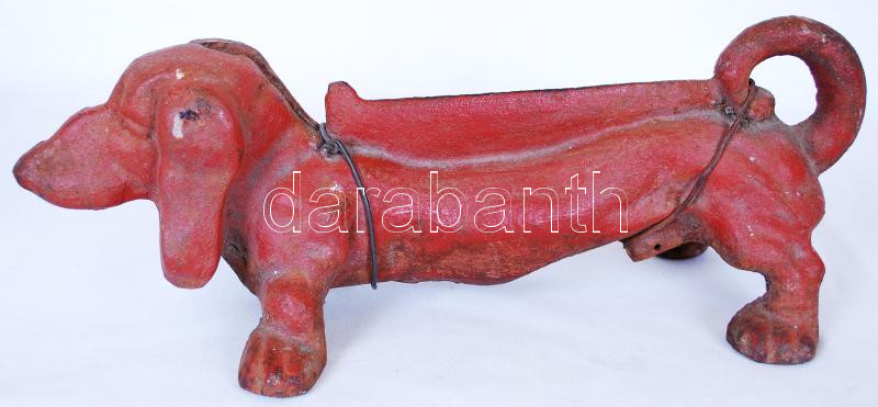 Öntöttvas tacskó negatív forma, dróttal rögzítve, h:37 cm, s:6,5 kg
