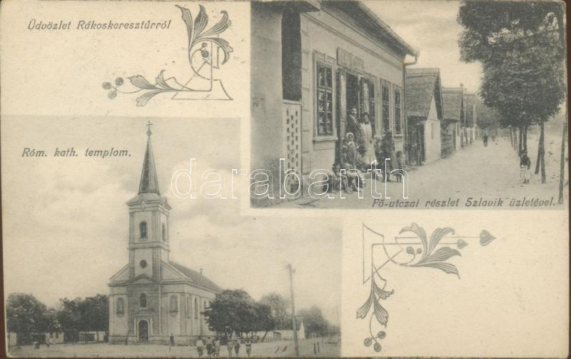 Budapest XVII. Rákoskeresztúr; Szlavik Ferenc üzlete, templom, Art Nou...