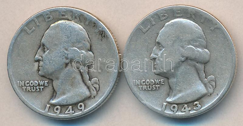 Amerikai Egyesült Államok 1943/49. 1/4$ Ag "Washington" (2x)...