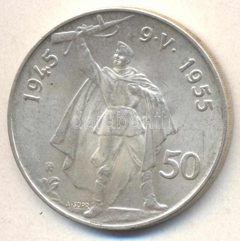 https://www.darabanth.com/en/181-Online-auction/181.0/Numismatics/Foreign-coins~1000395/Csehszlovakia-1955-50K-Ag-Felszabadulas-10-evforduloja-T2-3Cbr3ECzechoslovakia-1955-50-Koru~II620344