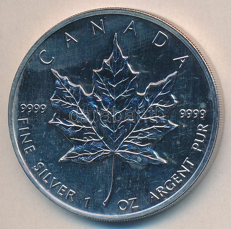 Kanada 1989. 5$ Ag "II. Erzsébet / Juharlevél" (1oz/0.999) l... https://www.darabanth.com/en/181-Online-auction/181.0/Numismatics/Foreign-coins~1000395/Kanada-1989-5USD-Ag-II-Erzsebet-Juharlevel-1oz0999-laminalt-foliaban-TBU-3Cbr3ECanada-1~II645550