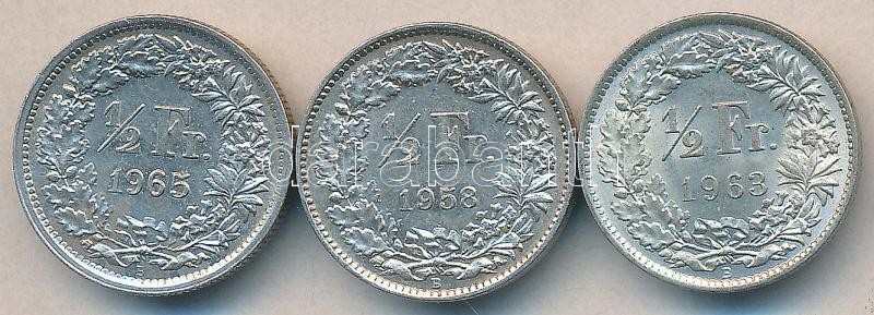 Svájc 1958. 1/2Fr Ag + 1963. 1/2Fr Ag + 1965. 1/2Fr Ag T:2