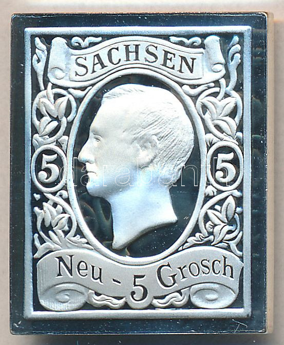 Németország DN 5 Neugroschen bélyeget mintázó Ag plakett (0.925/9.13g/...