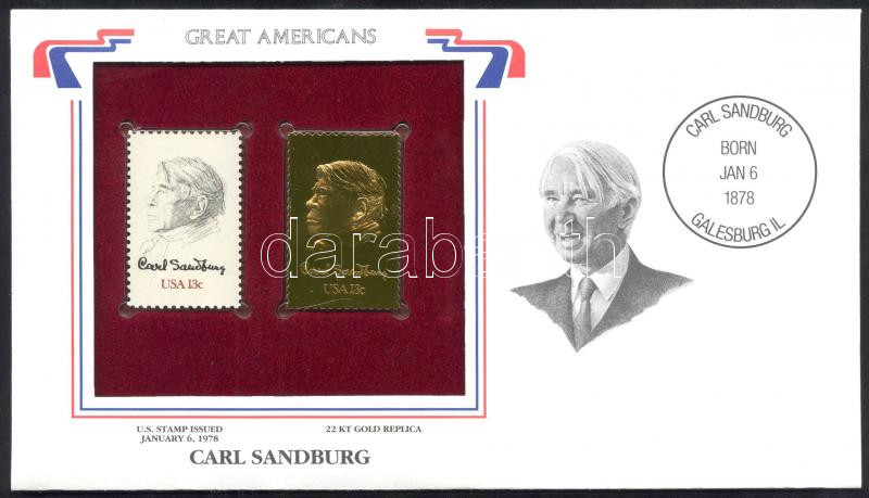 Amerikai Egyesült Államok/"Nagy Amerikaiak" 1978. "Carl... https://www.darabanth.com/en/181-Online-auction/181.0/Numismatics/Gold-foil-stamps~1000386/Amerikai-Egyesult-AllamokNagy-Amerikaiak-1978-Carl-Sandburg-13c-22K-aranyfolias-belyeg-r~II514836