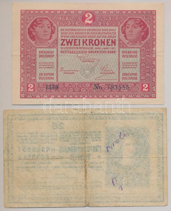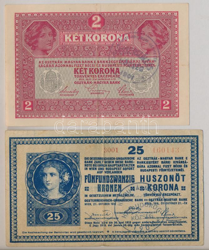 https://www.darabanth.com/en/181-Online-auction/181.0/Numismatics/Hungarian-Banknotes~1000390/1917-2K-JASZ-NAGYKUN-SZOLNOK--MESTERSZALLAS-KOZSEG--1901-korbelyegzovel-plus-1918-25K-~II648774