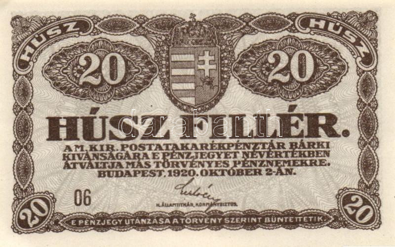 https://www.darabanth.com/en/181-Online-auction/181.0/Numismatics/Hungarian-Banknotes~1000390/1920-20f-4x-TI-I-~II649255