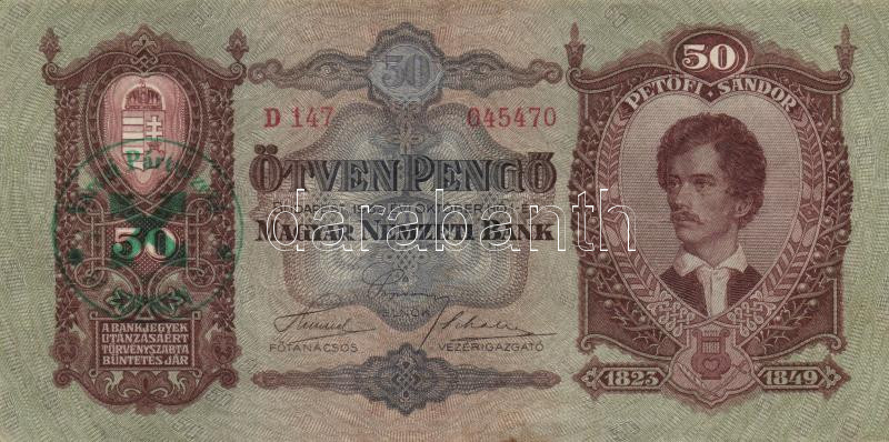 1930. 100P (2x) + 1932. 50P (2x) 3db "Városi Pártvezető Sopron&qu...