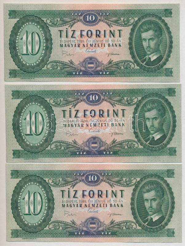 1969. 10Ft (3x) egymás utáni sorszámmal T:I