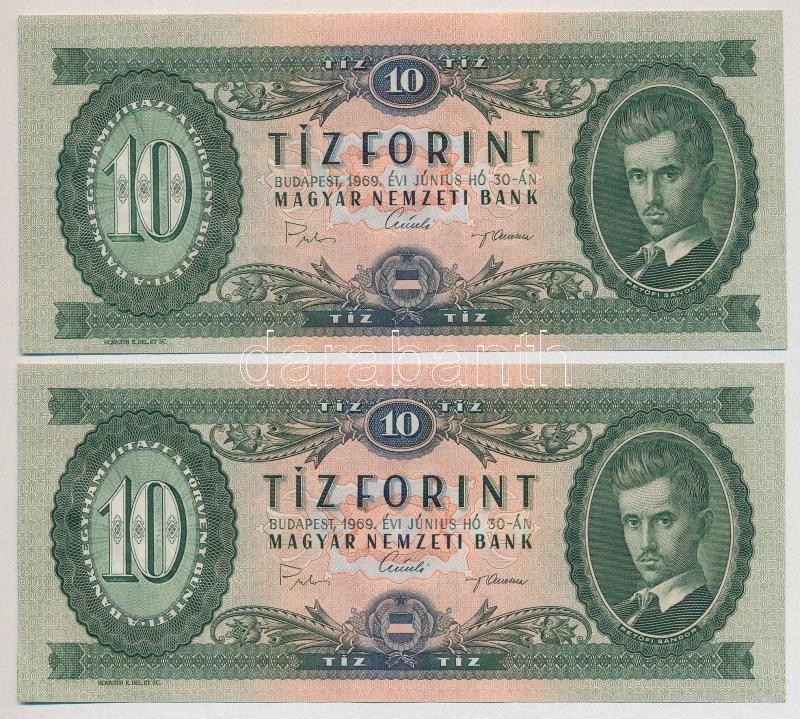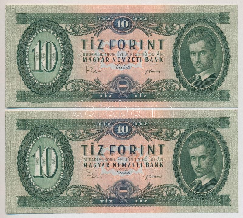 1969. 10Ft (4x) egymás utáni sorszámmal és egyik lefelé tolódott nyomattal T:I