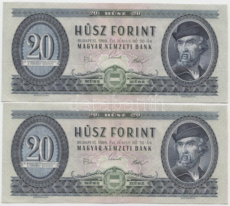 1969. 20Ft (2x) egymás utáni sorszámmal T:II