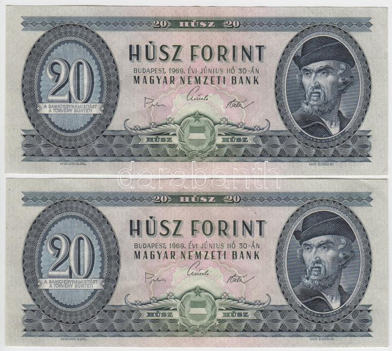 1969. 20Ft (2x) egymás utáni sorszámmal T:II