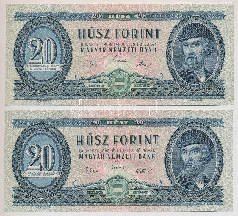 1969. 20Ft (2x) egymás utáni sorszámmal T:II