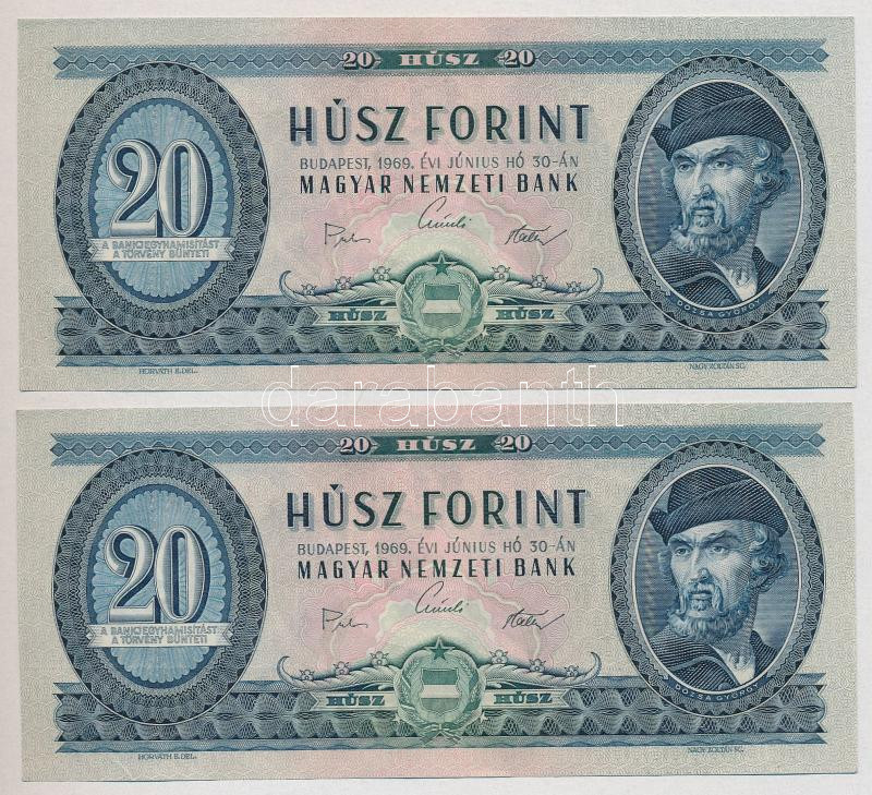 1969. 20Ft (2x) közeli sorszámmal T:I