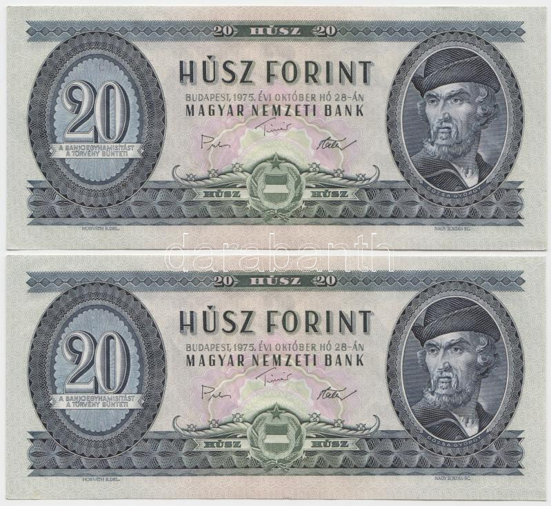 1975. 20Ft (2x) egymás utáni sorszámmal T:I,I-