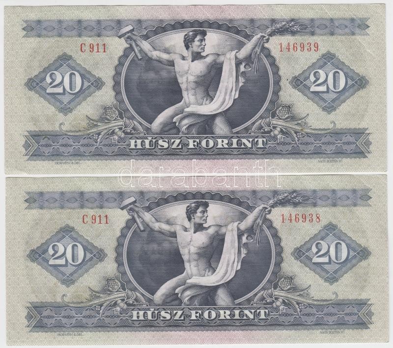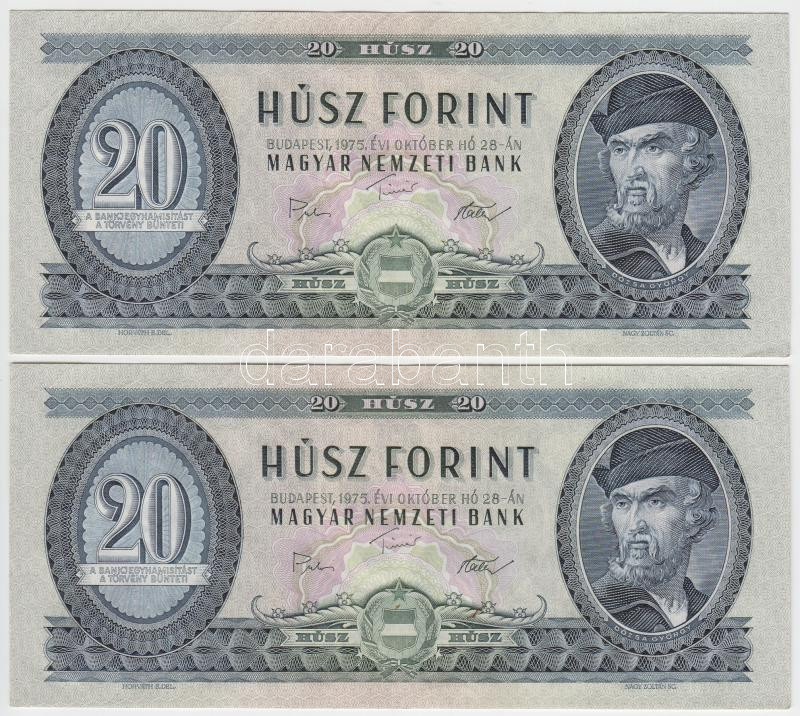 1975. 20Ft (2x) egymás utáni sorszámmal T:II