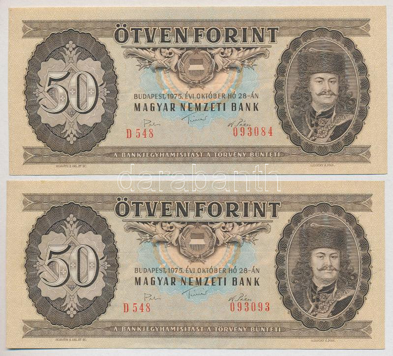 1975. 50Ft (2x) egymás utáni sorszámmal T:I-