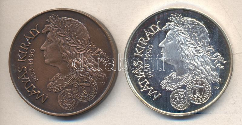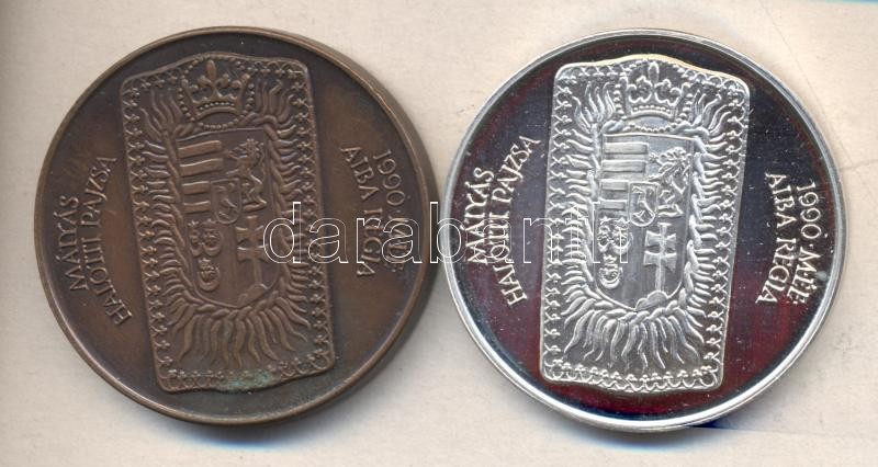 Fritz Mihály (1947-) / Szabó Géza (1939-) 1990. "MÉE Székesfehérvár - Mátyás király" Ag(0.900)/36,13g és Br emlékérem (42,5mm) pár T:PP,1