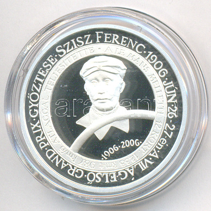 Lapis András (1942-) 2006. "Az első Grand Prix 100. évfordulója /... https://www.darabanth.com/en/181-Online-auction/181.0/Numismatics/Hungarian-commemorative-medals~1000392/Lapis-Andras-1942-2006-Az-elso-Grand-Prix-100-evforduloja-Szisz-Ferenc-Ag0999-proba~II548581