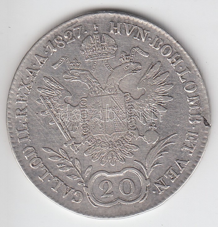 https://www.darabanth.com/en/181-Online-auction/181.0/Numismatics/Hungarian-metal-and-silver-coins~1000391/1827B-20Kr-Ag-I-Ferenc-T2-~II649776