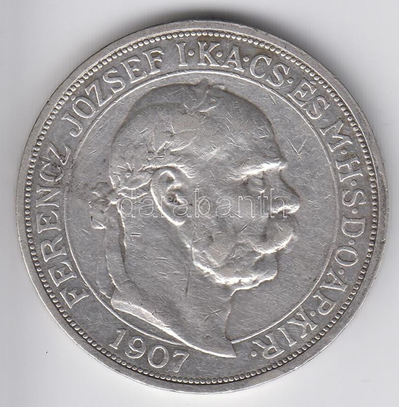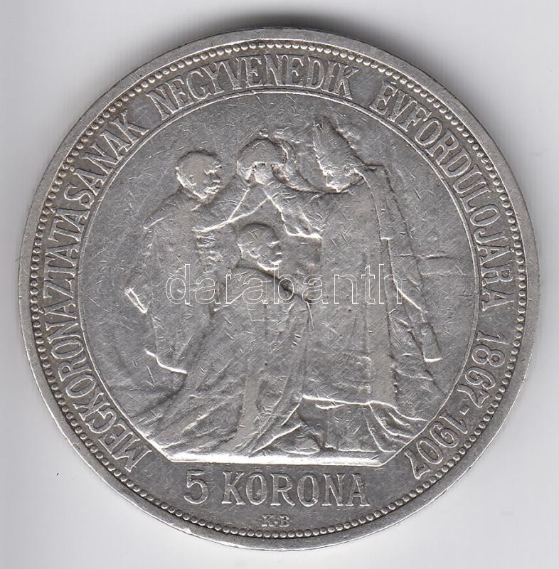 https://www.darabanth.com/en/181-Online-auction/181.0/Numismatics/Hungarian-metal-and-silver-coins~1000391/1907KB-5K-Ag-Koronazasi-evfordulo-T3~II645309