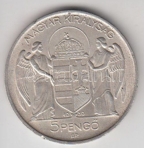 https://www.darabanth.com/en/181-Online-auction/181.0/Numismatics/Hungarian-metal-and-silver-coins~1000391/1939-5P-Ag-Horthy--balra-T2-ph~II644834
