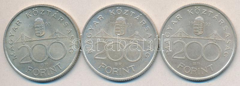 1993. 200Ft Ag "MNB" (3x) T:2-