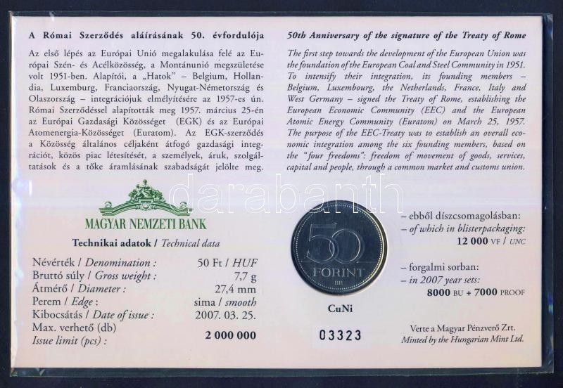 2007. 50Ft "Római Szerződés" elsőnapi veret számozott emléklapon T:1 Csak 12000db!