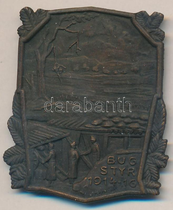 Osztrák-Magyar Monarchia 1914-16. "BUG STYR 1914-16" bronzozott tömör cink sapkajelvény (38x32mm) készítő: Arkanzas tű nélkül T:2