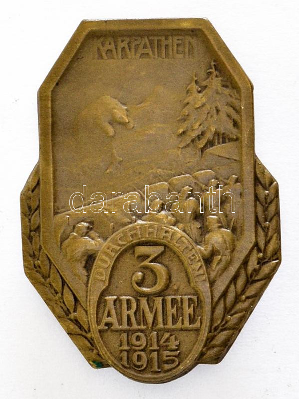 Austro-Hungarian Monarchy 1914-1915. "KARPATHEN DURCHHALTEN 3. ARMEE 1941-1915" tombac (gilt) cap badge maker: Entw.F.Swoboda, Bildh.Gurschner Wien VII/2 (40x29mm) vertical pin C:XF