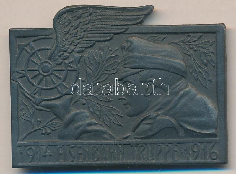 https://www.darabanth.com/en/181-Online-auction/181.0/Numismatics/Military~1000398/Osztrak-Magyar-Monarchia-1914-1916-1914-EISENBAHN-TRUPPE-1916-tomor-cink-sapkajelveny-30x41m~II649114