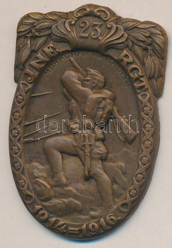 Osztrák-Magyar Monarchia 1914-1916. "Markgraf von Baden 23. Gyalogezred" matt sárgaréz sapkajelvény (40x25mm) szignó: Gurschner; készítő: Atel.G. Gurschner Wien VII/2; tű nélkül T:2